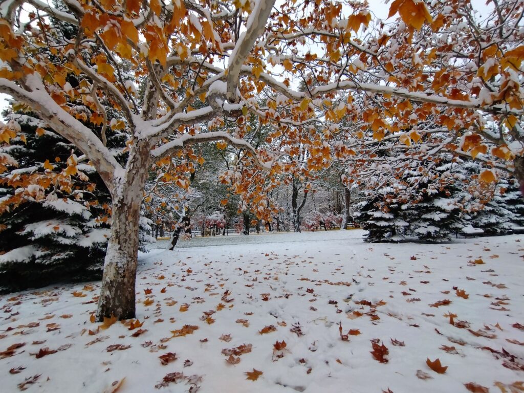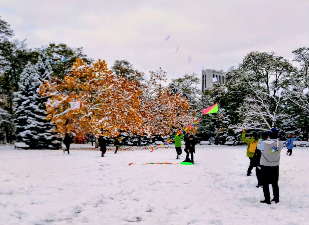 札幌市中島公園(2025-11-08)雪が降りました。