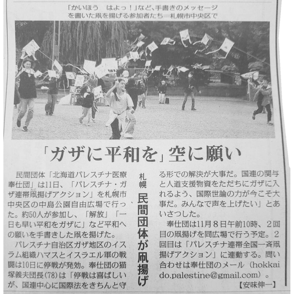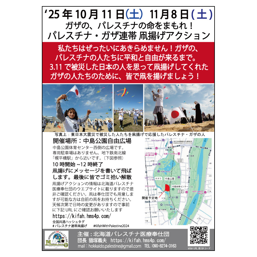パレスチナ連帯凧揚げアクション札幌ご案内(2025/11/8土10:00開催)中島公園