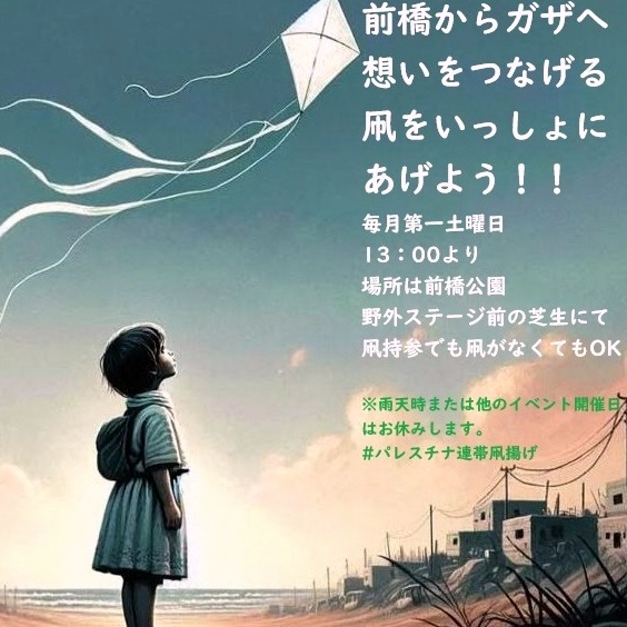 『前橋からパレスチナへガザへ、想いをつなげる凧をあげよう誰でも参加できる月一回の凧あげアクション』(11月15日土13:00開催)